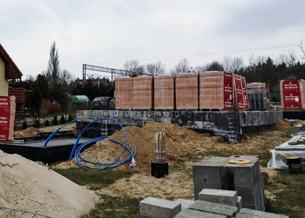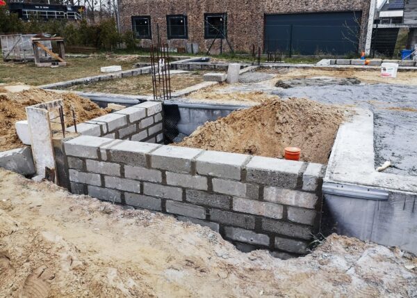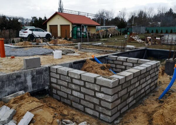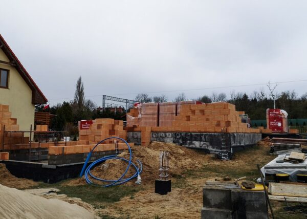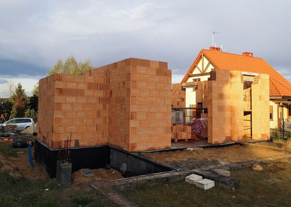 Część starego muru fundamentowego została użyta. Należało wylać dodatkowe fundamenty i zbudować mur fundamentowy. Całość konstrukcji zabezpieczyć środkami przeciwwilgociowymi oraz ocieplić.